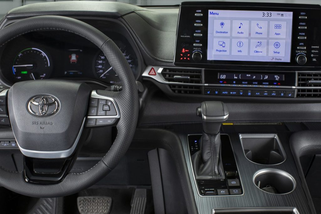 La nueva Sienna 2023 viene con un interior moderno y elegante. En lugar del diseño de cabina abierta del modelo de la generación anterior, Toyota ha creado una consola central alta que abarca la distancia desde el tablero hasta el reposabrazos central, con un gran compartimento de almacenamiento debajo.