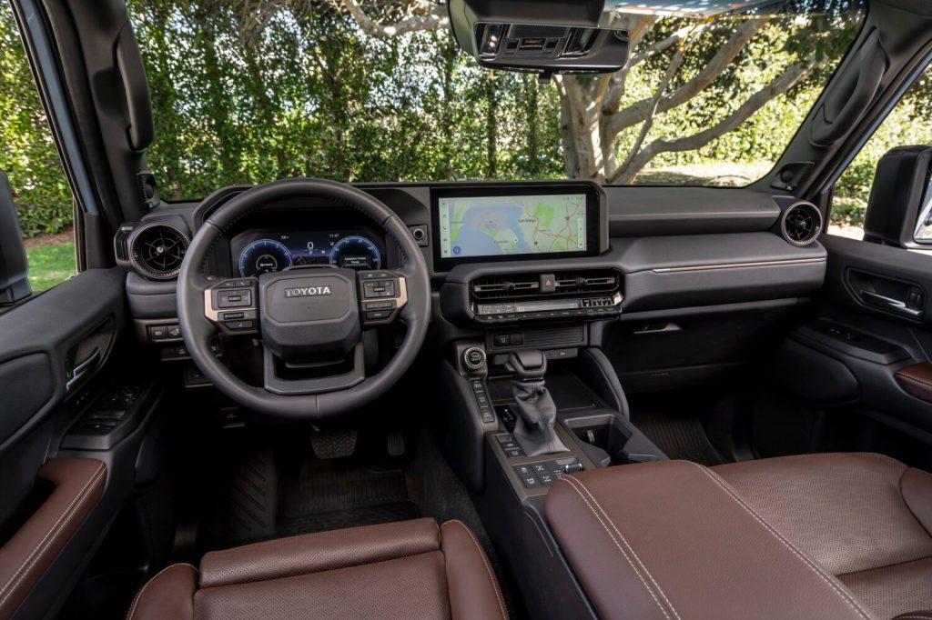 El habitáculo del Land Cruiser ofrece una combinación de materiales duraderos y tecnologías modernas. La versión 1958 cuenta con asientos de tela calefactables y una pantalla táctil de 8 pulgadas, mientras que la versión estándar eleva la experiencia con asientos de cuero ventilados, una pantalla de 12.3 pulgadas y un sistema de sonido JBL de 14 bocinas. Ambos modelos ofrecen espacio para cinco pasajeros y una capacidad de carga de hasta 37.5 pies cúbicos detrás de la segunda fila .
